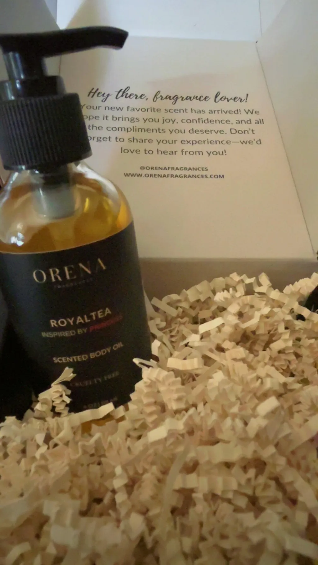 Definitely have to love tea scents with this one, but the sweetness makes it perfect. Not an exact dupe but a lovely complement to the OG fragrance. All the Orena body oils are fast absorbing and leave my skin so soft. I always apply them to wet skin for the best results.