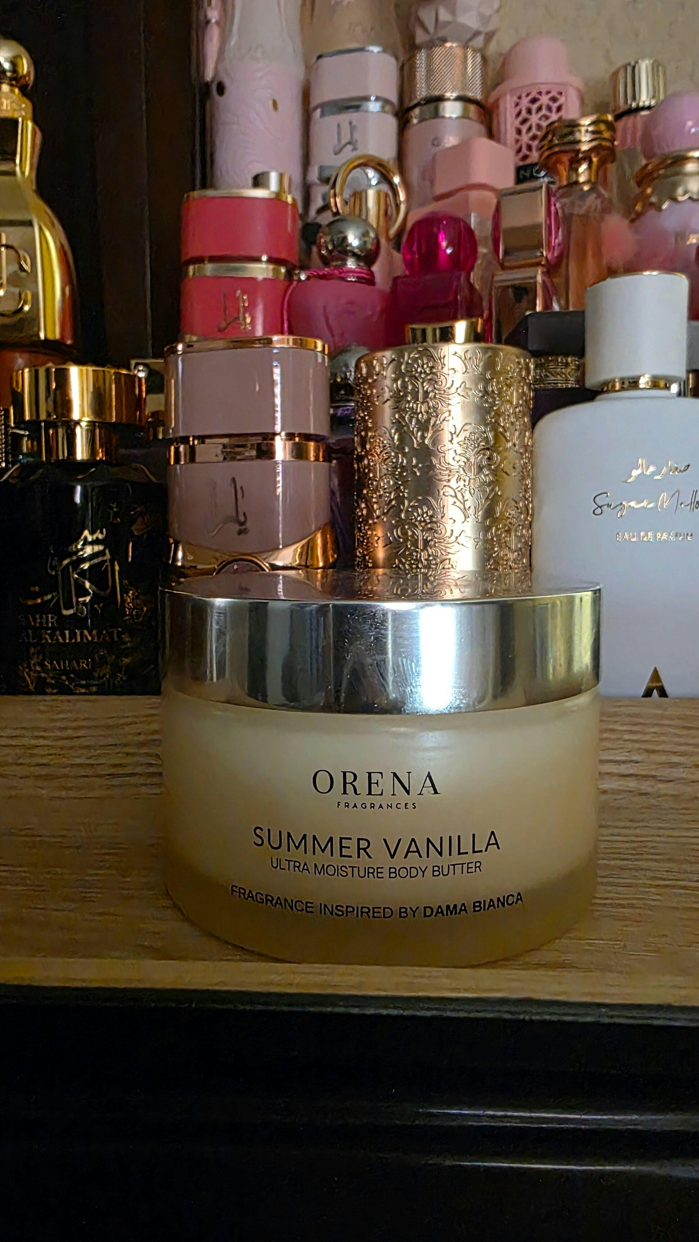 This body butter is amazing, from the texture and to how it absorbs on my skin. The SCENT is amazing! It is a beautiful vanilla scent, and smells like Dama Bianca. It lingers on and is not overpowering, and projects really well. I layer it with the Summer Vanilla body oil and the perfume oil, I don't even need to add perfume on; and it lasts all day. I wore this to work, and i received multiple complements. You will not be disappointed.